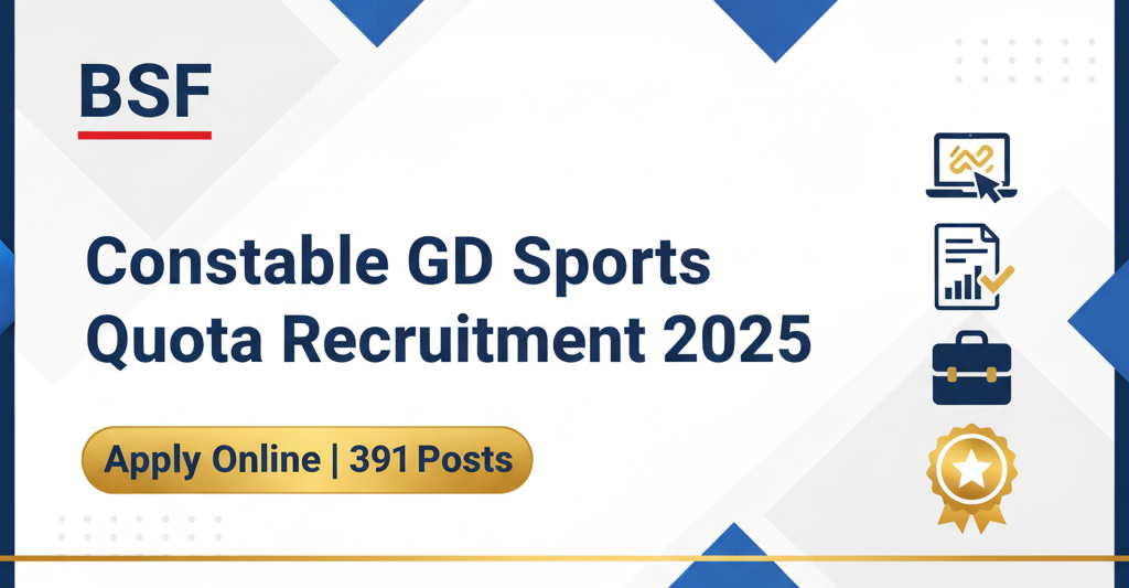 BSF Constable GD Sports Quota Recruitment 2025 notification has been released for 391 vacancies under Group C (Non-Gazetted, Non-Ministerial) posts. Both male and female meritorious sportspersons can apply online from 16 October to 4 November 2025 at rectt.bsf.gov.in. Selection will be based on sports achievements, physical standards, and medical fitness.